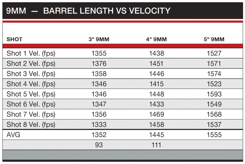 While there are no definitive rules as to how much velocity difference you will see, these tests should give you an idea of what to expect with your firearm. In the future, we hope to continue exploring other variables in the velocity difference equation, such as very overbore and straight-wall rifle cartridges. In the meantime, the numbers from these tests will get you in the ballpark.